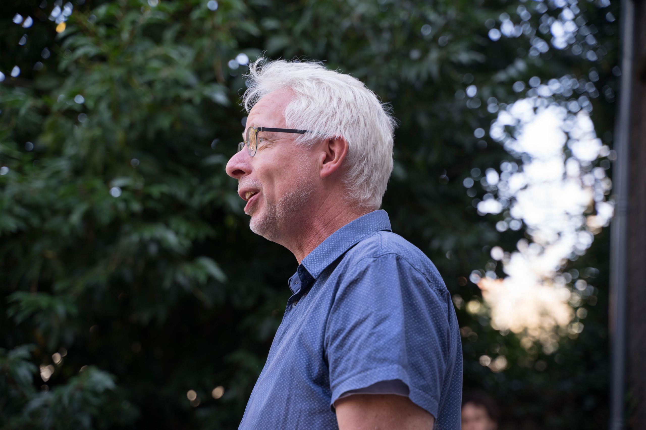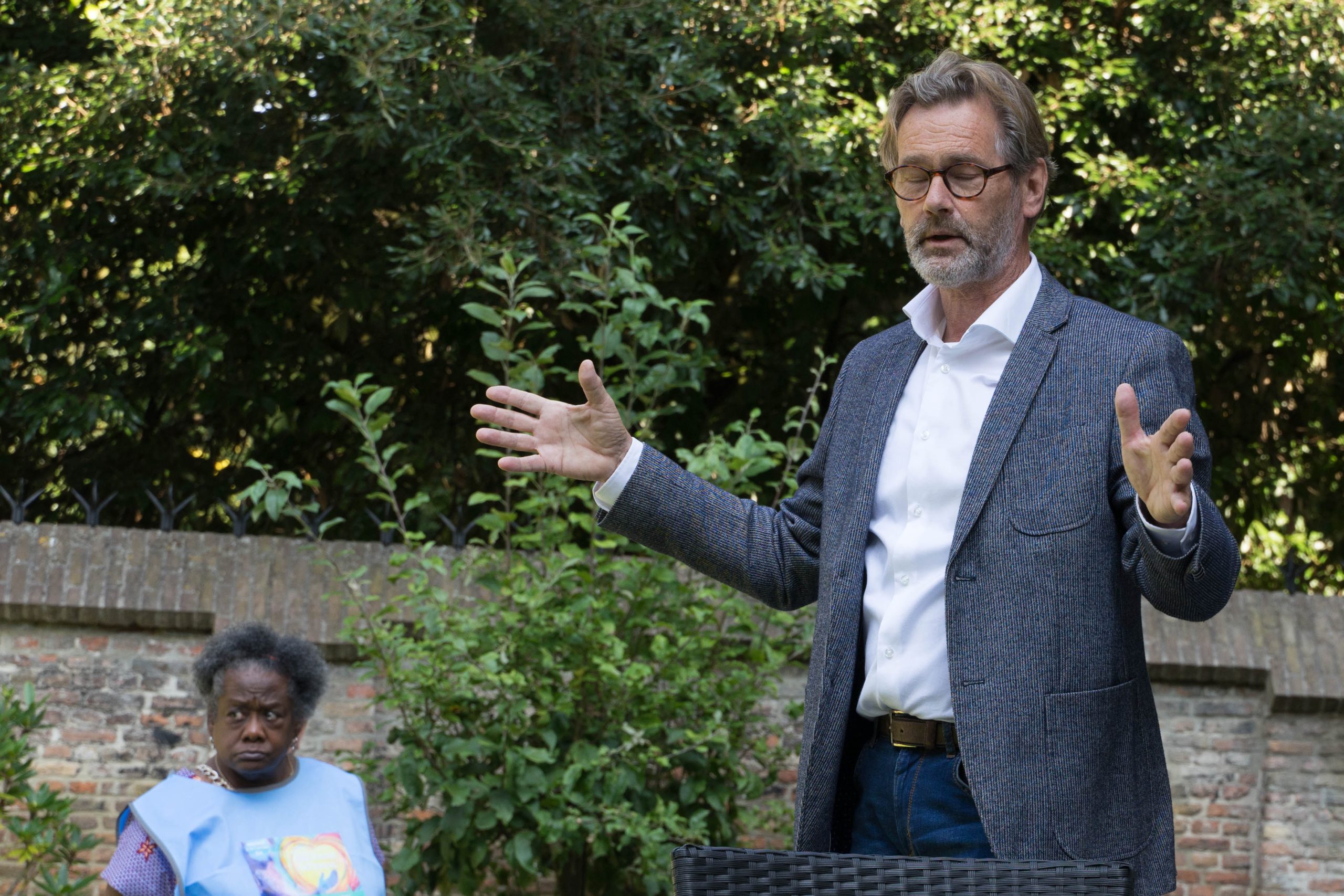 In de prachtige tuin die gelegen is achter de pastorie van het Begijnhof, vertelde Anton Overboom zijn verhaal. Hoe hij contact maakte met de leerlingen in een dorp in Botswana door hun namen uit zijn hoofd te leren.